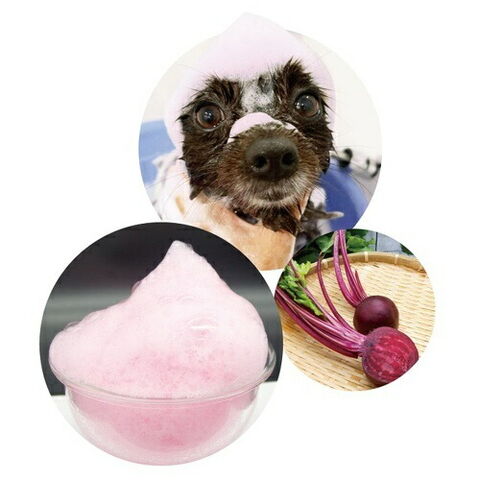 ・抗酸化作用が期待されるビーツエキスの天然色素によるピンクの泡が特徴的な泡パックです。天然由来アミノ酸成分が、被毛のハリ・コシ感をアップします。