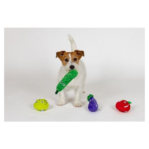 くわえやすいサイズ感とやさしい肌触りで小型犬に最適。キューキュー鳴るスクイーカー入り。