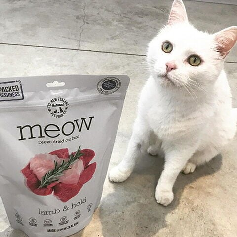 MEOWミャウフリーズドライキャットフードはニュージーランド産「生」のフリーズドライ製法で作られたキャットフードです。猫は完全な肉食動物で、元々自分で狩りをするフレッシュイーター(新鮮な生の食べ物を好む動物)です。加熱調理された「えさ」より生の「食事」を!愛猫の健康を第一に考え、ニュージーランドの大自然で育った新鮮な食材を調理したフリーズドライキャットフード。