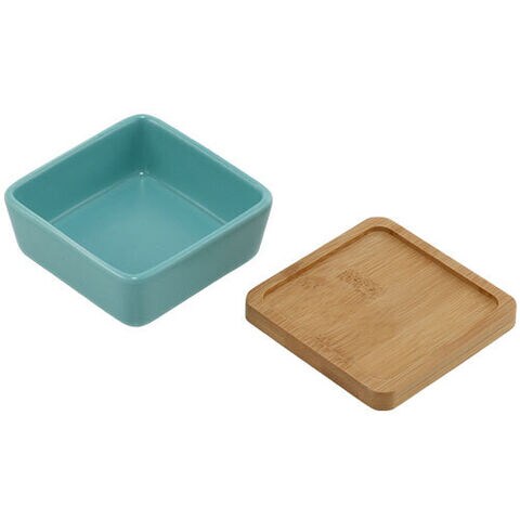 可愛いデザインの竹でできた受け皿付き陶器食器です。