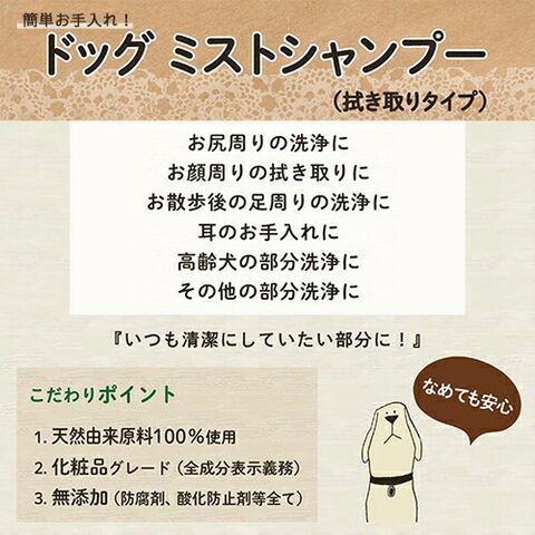 いつも「きれい清潔」のための、洗わない拭き取りタイプのシャンプーです。