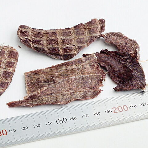 国産ジビエの鹿あばらを与えやすい大きさにカットしました。骨の周りには肉も付いてて食いつき良く、長持ちおやつとして人気です。