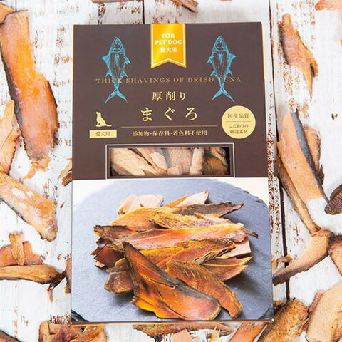 国産まぐろにこだわり、一枚一枚厚削りした添加物・保存料・着色料不使用の厚削りまぐろをご堪能下さい。食感を残す為にあえて厚めに削り、コク、旨味や風味豊かな味わいをお楽しみ頂けます。