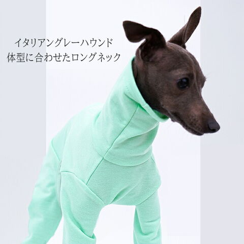 イタリアングレーハウンド ミニピン 服 ロンパース 薄手 ハイネック グリーン 無地 シンプル 部屋着 ペット ストレスフリー 綺麗カラー 犬服 イタグレ おしゃれ カッコイイ 抜け毛 防寒 長袖 IG007OP