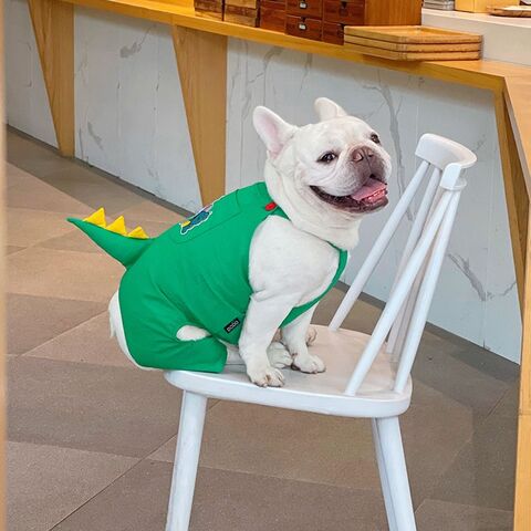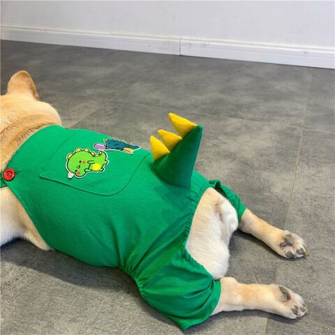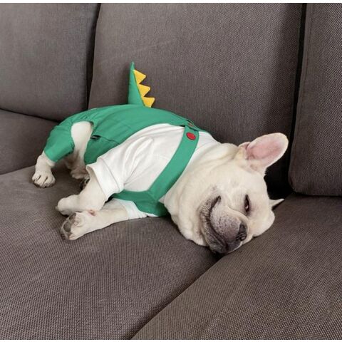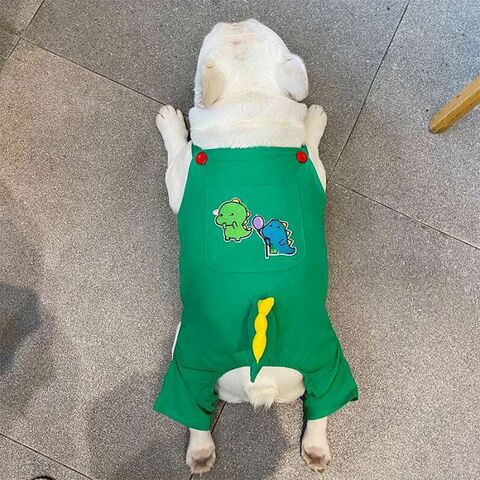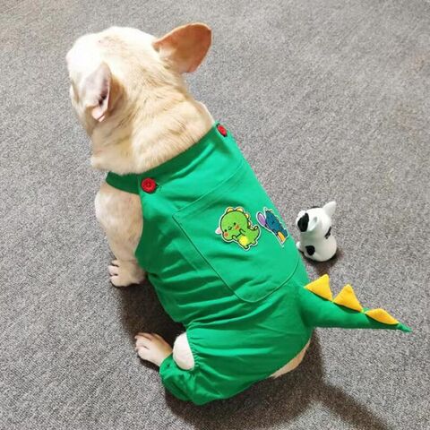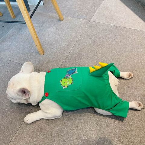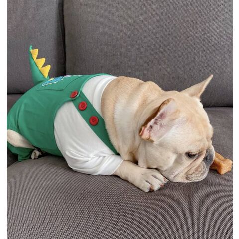 フレンチブルドッグ 恐竜サロペット 犬 秋冬 服 ドッグウェア オーバーオール 立体おしっぼ おしゃれ かわいい 重ね着 散歩 部屋着 ペットウェア グリーン ペット服 犬服 洋服 カジュアル 中型犬 小型犬 大型犬 KM399S NEW