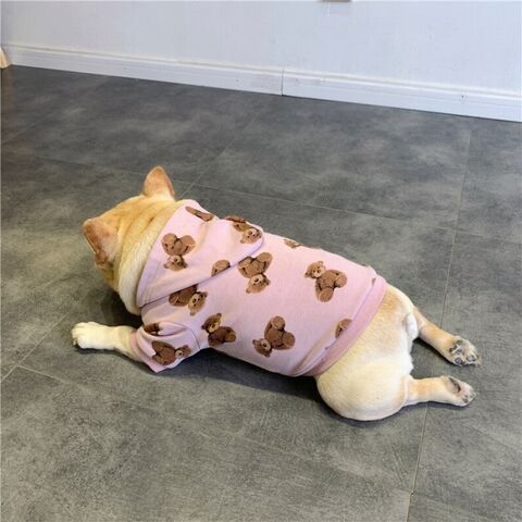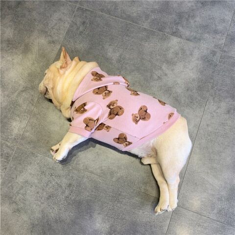【返品交換不可】フレンチブルドッグ ペット 犬 服 秋冬 中型犬 おしゃれ かわいい 秋 冬 厚手 パーカー フード付き Tシャツ トレーナー フレブル ドッグウェア バイカラー カラフル 大人気 おすすめ KM407TS [ピンク , XLサイズ ]