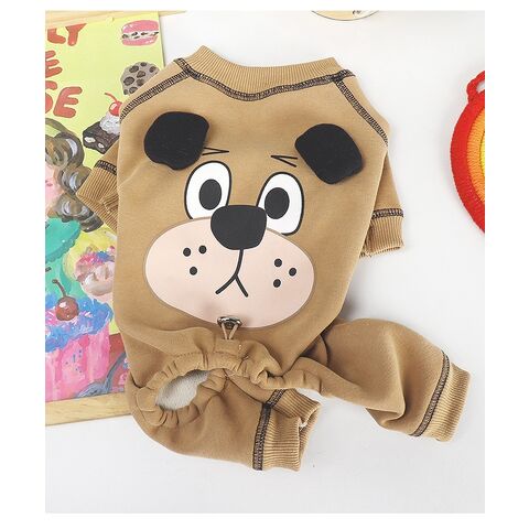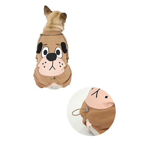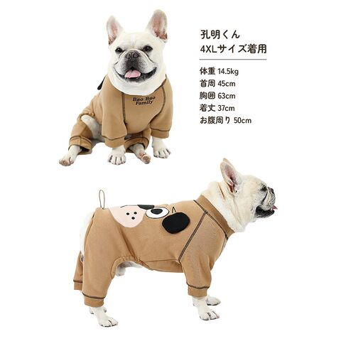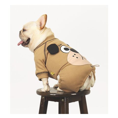 犬 服 ロンパース 裏ボア あったかロンパース 厚手 犬顔プリント ドッグフェイス お尻調整紐あり 中型犬 フレンチブルドッグ フレブル 冬服 犬冬 散歩 おしゃれ ブラウン 茶色 送料無料 KM593OP