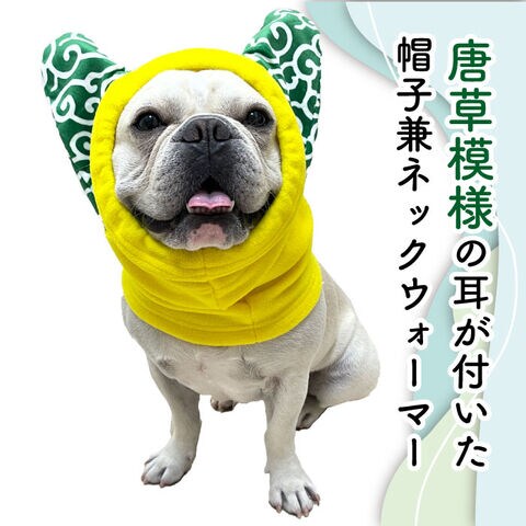 【当社オリジナル】犬 フレンチブルドッグ 服 秋冬 お正月 帽子 防寒 ネックウォーマー 2WAY帽子 耳付き 服 猫 もこもこ スヌード マフラー 暖かい フリース生地 ドッグウェア 秋 冬 ペット用品 耳保護 KM645G