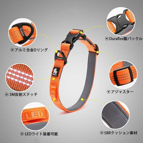 犬用首輪 3M反射 ナイロン首輪 犬 軽量首輪 犬用 アルミ合金Dリング 首輪 Duraflexバックル クッション付き LEDライト対応 小型犬 中型犬 大型犬 夜のお散歩 安全 丈夫で快適 犬用カラー 高密度ナイロン ドッグカラー アウトドア