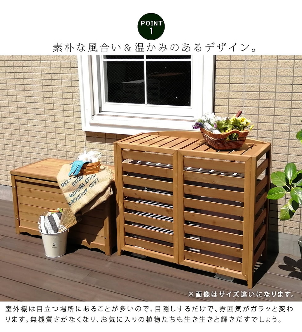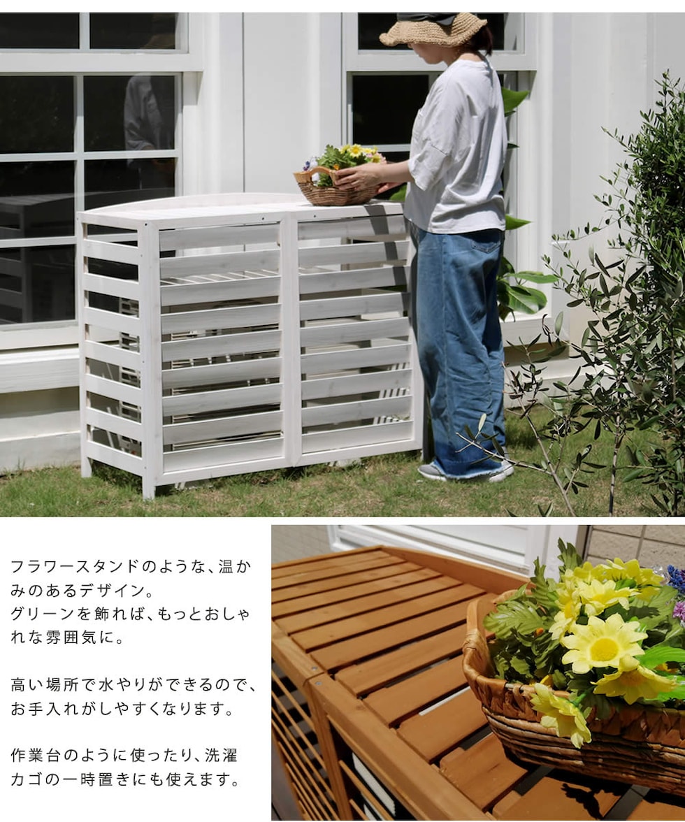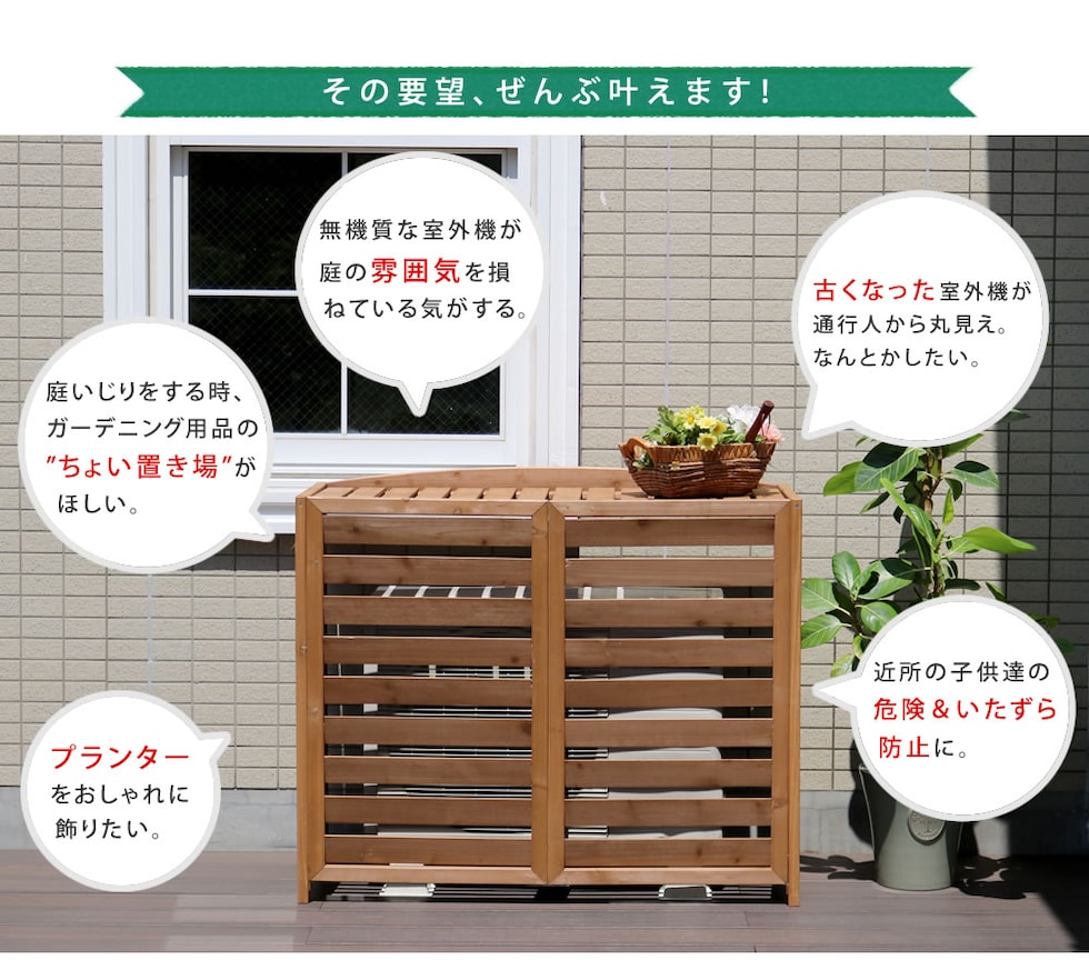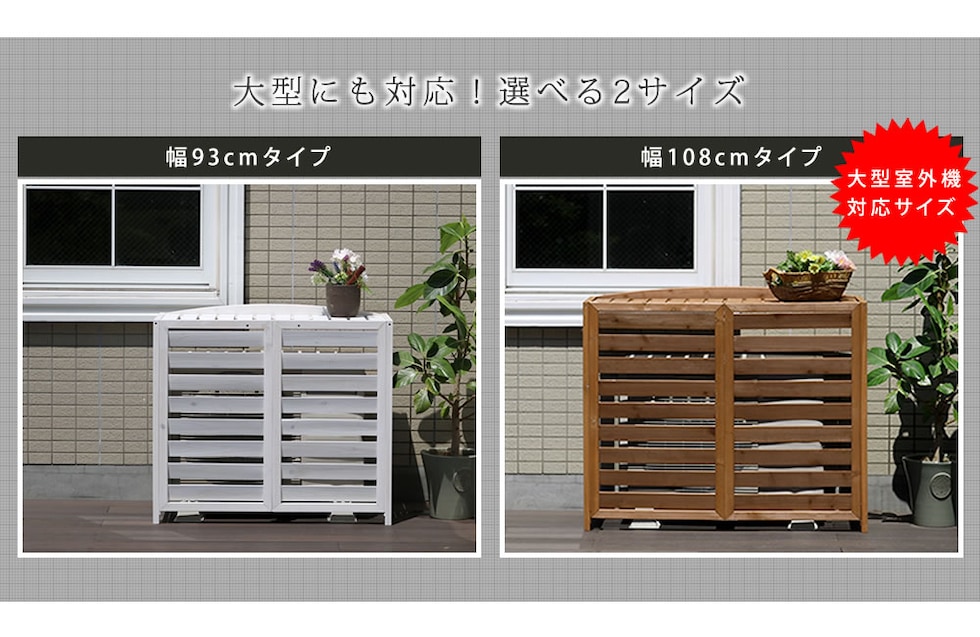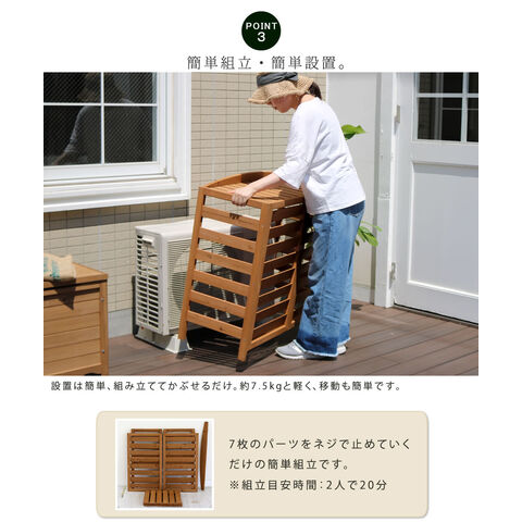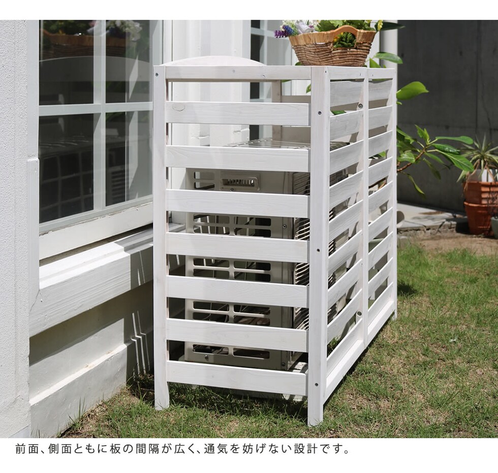 住まいスタイル 逆ルーバー室外機カバー 幅108 「AIRNA(エアナ)」【送料無料 エアコンカバー 簡単組立 日よけ 省エネ 排熱 節電 節約 棚 ガーデン 目隠し 木製 天然木 園芸 庭 ベランダ バルコニー DIY おしゃれ 】