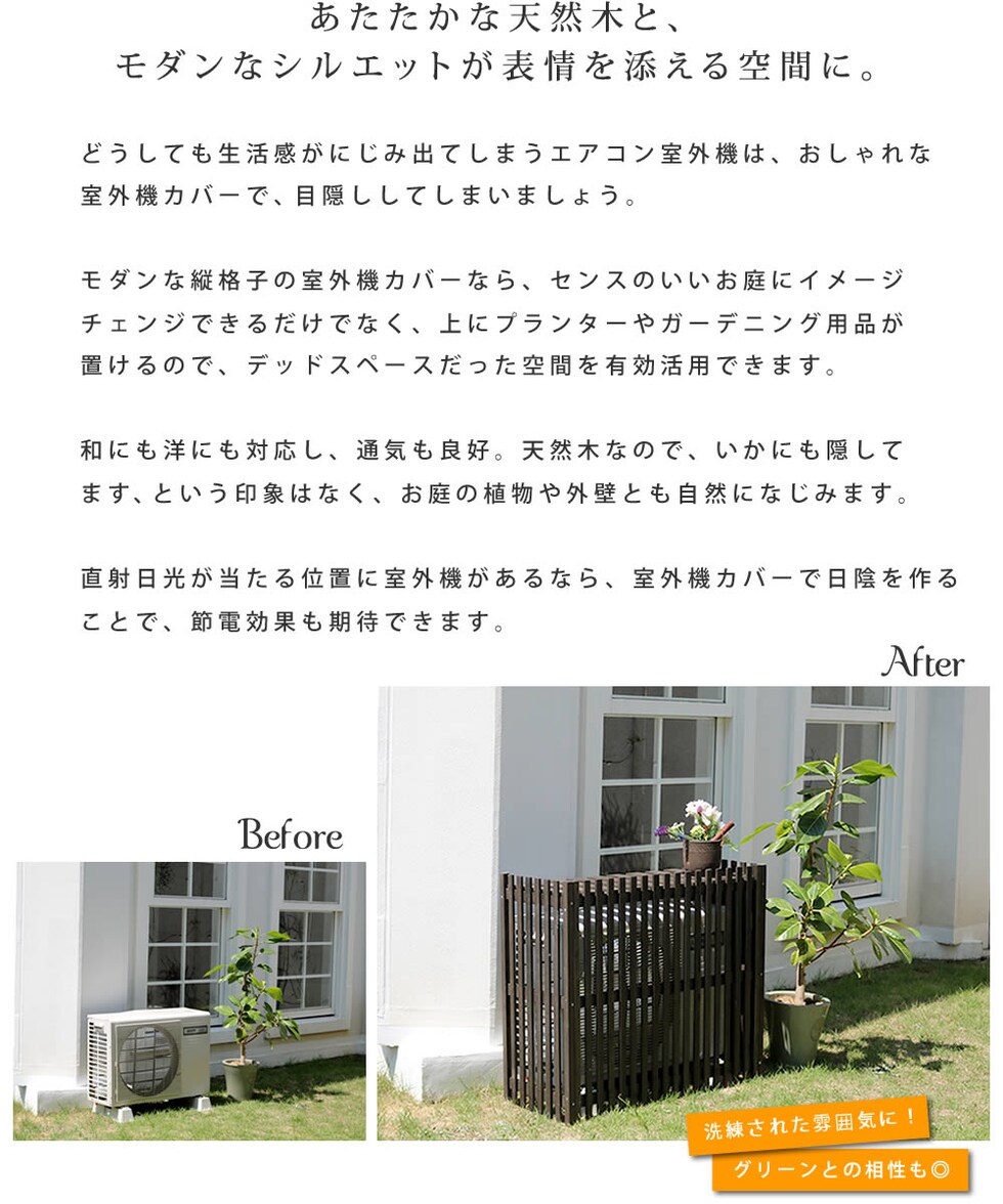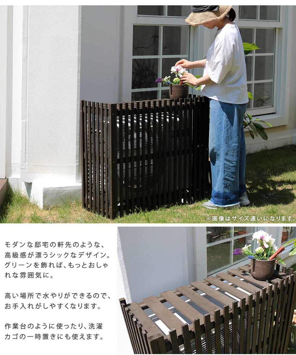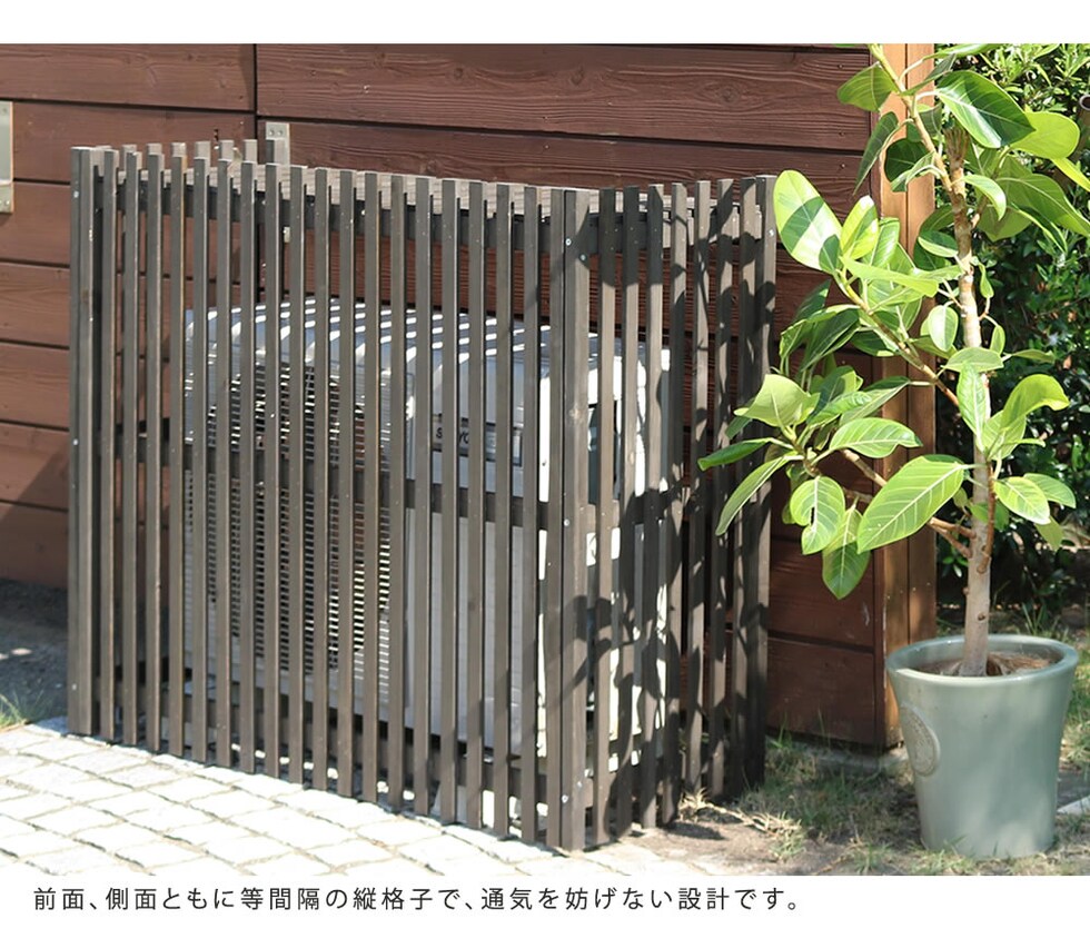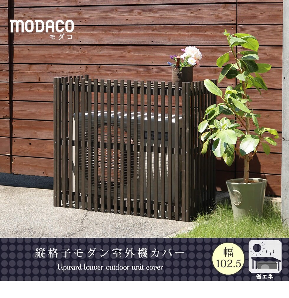 住まいスタイル 縦格子モダン室外機カバー 幅102.5 「MODACO(モダコ)」【送料無料 エアコンカバー 簡単組立 日よけ 省エネ 格子 節電 和風 棚 ガーデン 目隠し 木製 天然木 園芸 庭 ベランダ バルコニー DIY おしゃれ 】