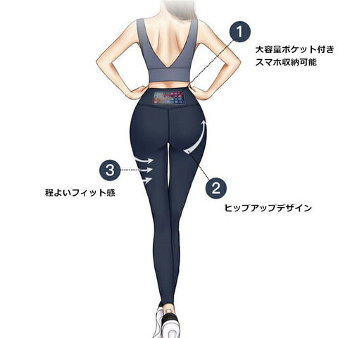 ★ウエスト部に大きいな隠しポケット付き、スマホ収納可能!