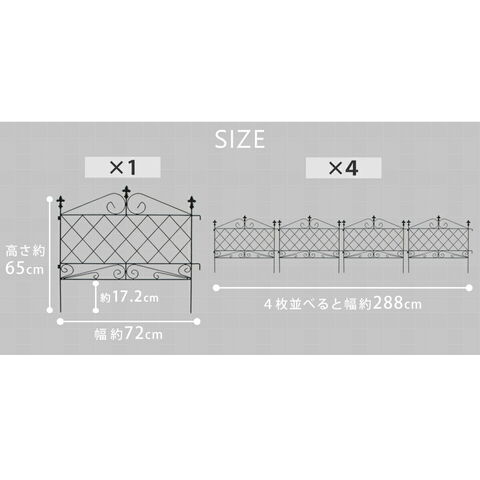 住まいスタイル アプローチローフェンス 4枚組<br>【送料無料 フェンス アイアン ガーデンフェンス ガーデニング 枠 柵 仕切り 目隠し 境目 クラシカル アンティーク トレリス ベランダ つる 薔薇 バラ 朝顔 園芸 ラティス つるバラ 庭誘引 屋外 】
