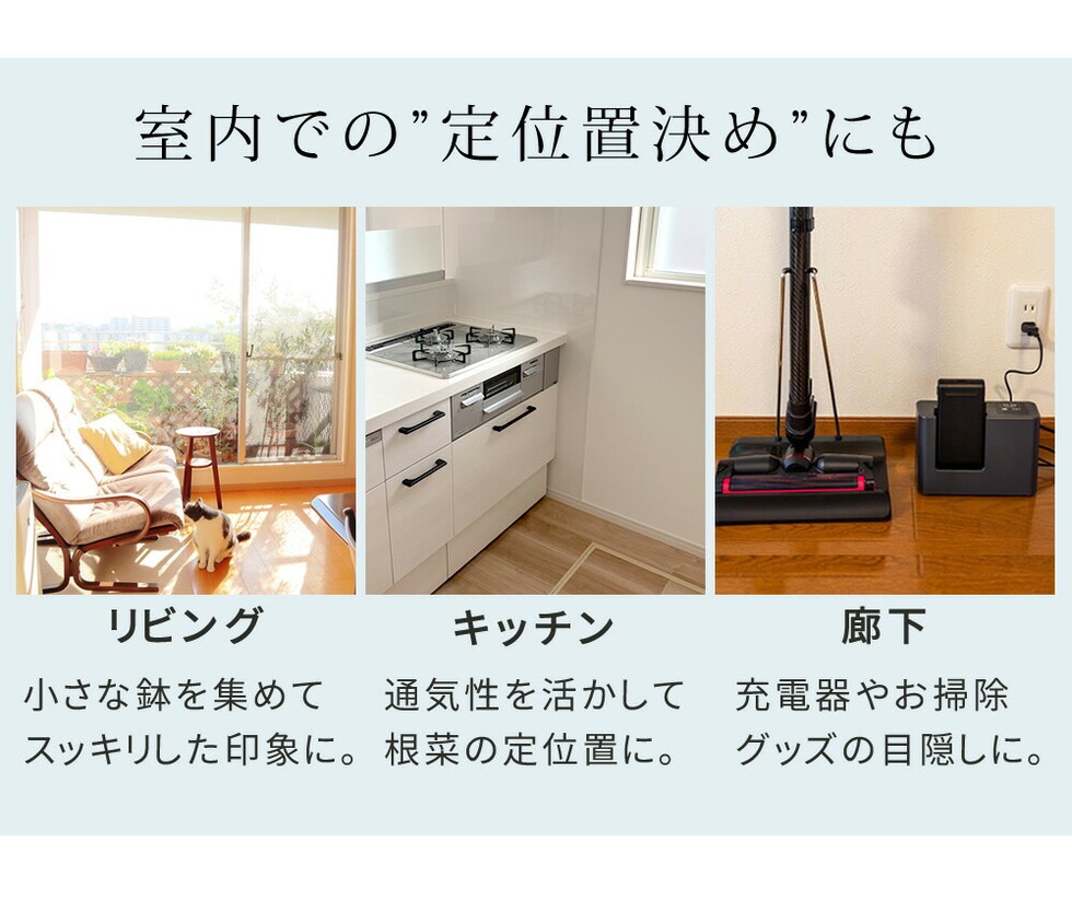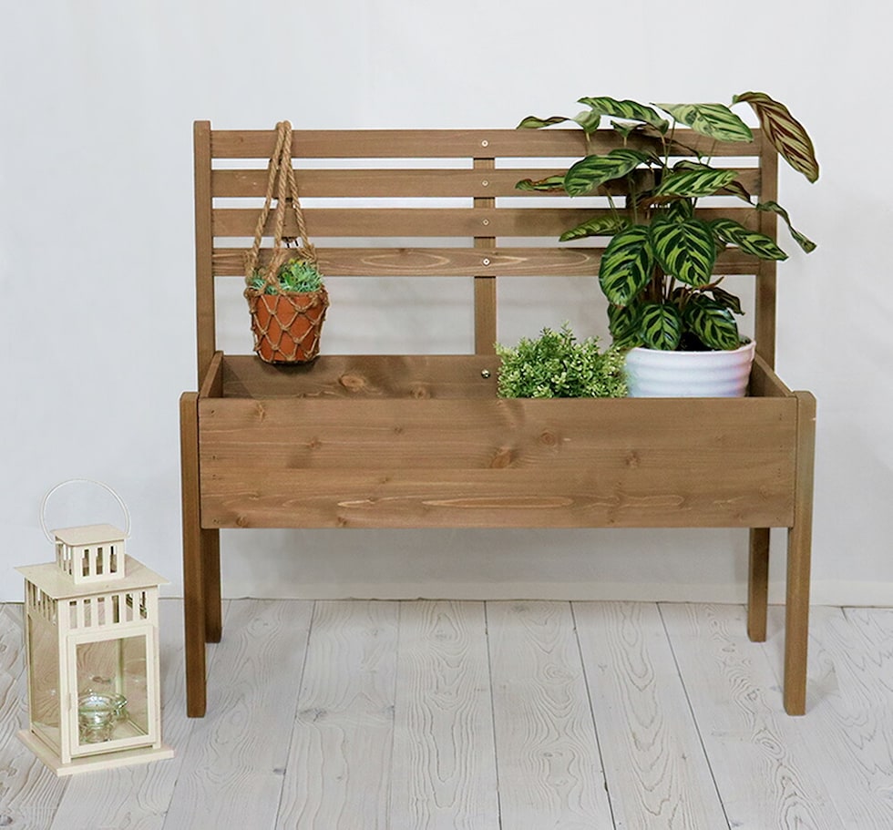 ありそうでなかった、寄せ植えが映える椅子型プランタースタンドです。玄関脇やベランダ、ポーチのような土のない場所を、生き生きとした華やかな空間に変えます。天然木の温かな手触りと、フランスの田舎町にありそうなアースカラーも自慢