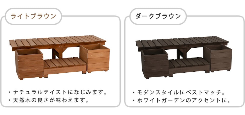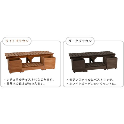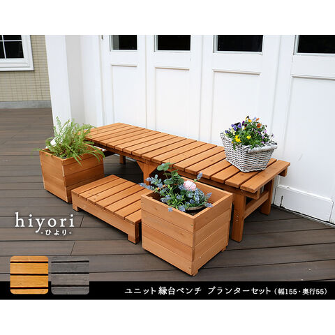 住まいスタイル ユニット縁台ベンチ hiyori(ひより) プランターセット(幅155・奥行55) <br> 【 ウッドデッキ 簡単組立 縁側 DIY 木製 天然木 ベランダ マンション ガーデン 屋外 家具 ライトブラウン ダークブラウン アウトドアリビング ベンチ 木製縁台 】