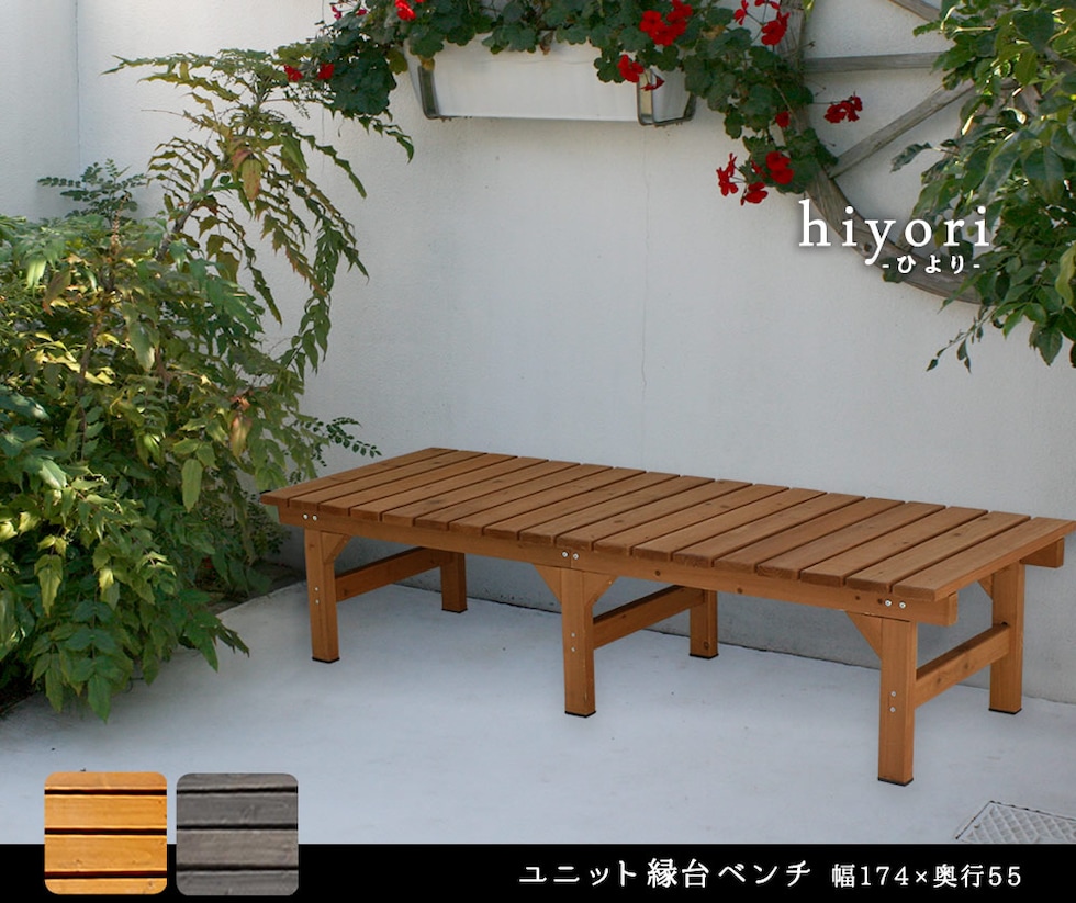 住まいスタイル ユニット縁台ベンチ hiyori(ひより) 174×55 単品 <br> 【 ウッドデッキ 簡単組立 縁側 DIY 木製 天然木 庭 ベランダ マンション おしゃれ ガーデン 屋外 家具 ライトブラウン ダークブラウン アウトドアリビング ベンチ 木製縁台 】