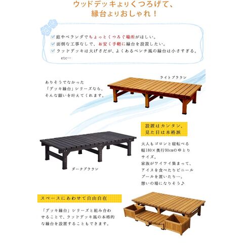 住まいスタイル デッキ縁台180×90 3点セット【送料無料 ウッドデッキ風 簡単 縁側 本格的 DIY 木製 天然木 庭 ベランダ マンション おしゃれ 小型 北欧 ガーデン 屋外 家具 ライトブラウン ダークブラウン】