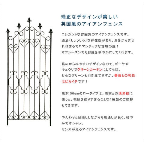 住まいスタイル アイアンフェンス150 ロータイプ(4枚組) ブラック【送料無料 フェンス アイアン ガーデンフェンス ガーデニング 枠 柵 仕切り 目隠し 境目 クラシカル アンティーク トレリス ベランダ つる 薔薇 バラ 朝顔 園芸 ラティス】