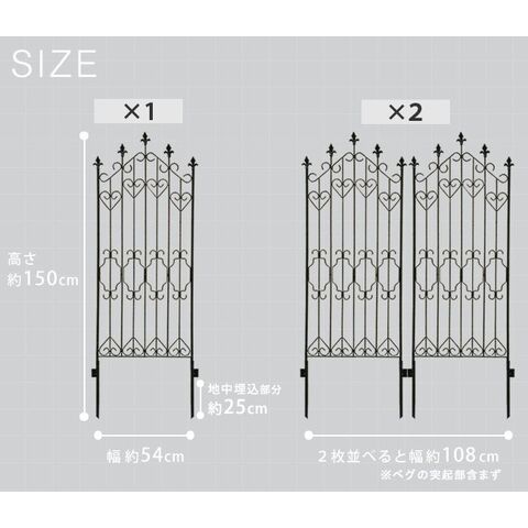 | ■サイズ | 本体:幅 約540×奥行 約14×高さ 約1500mm ※2枚並べた時の幅:約1080mm(ペグの突起部含まず) ※地中埋め込み部分:約250mm |
