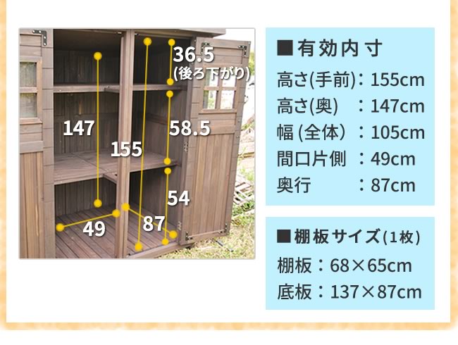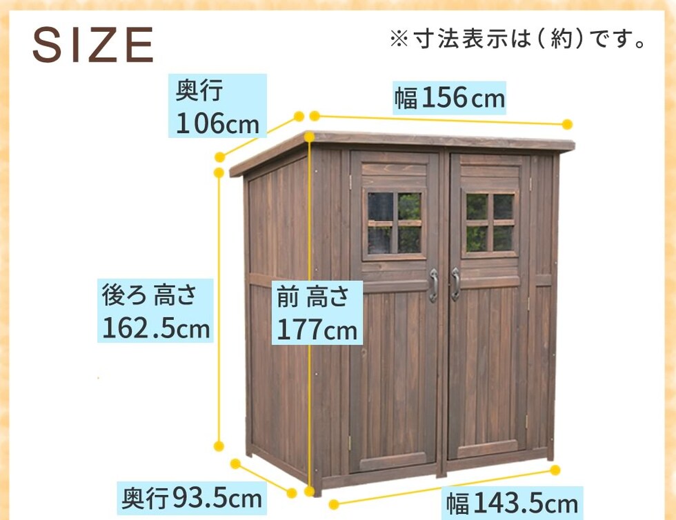 | ■サイズ | 本体:幅 約1560×奥行 約1060×高さ 約1625/1770mm 棚板サイズ:幅約680mm×奥行 約650mm(4枚) |