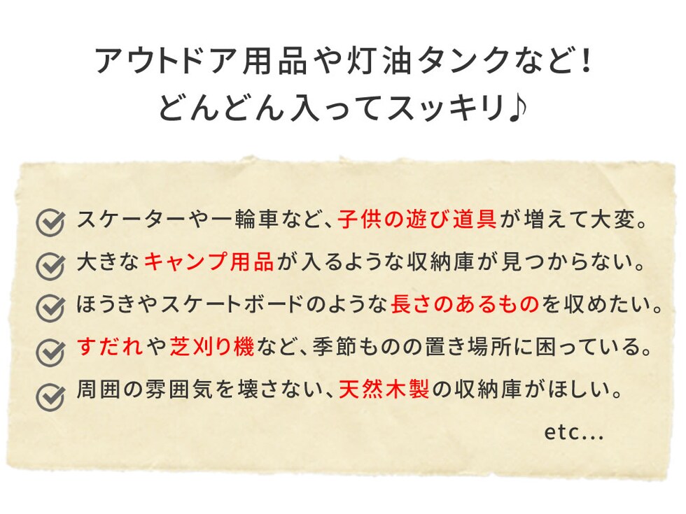 ■アウトドア用品や灯油タンクなど!どんどん入ってスッキリ♪■