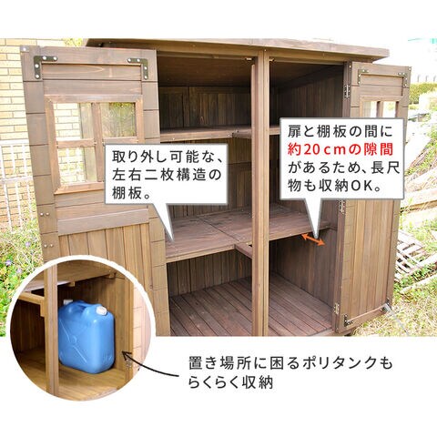 住まいスタイル カントリー小屋(大サイズ) 【送料無料 物置 倉庫 収納庫 天然木 木製 庭 物入れ おしゃれ 大型 北欧 ナチュラル ガーデニング キャンプ スポーツ 屋外 家具 ライトブラウン ダークブラウン】