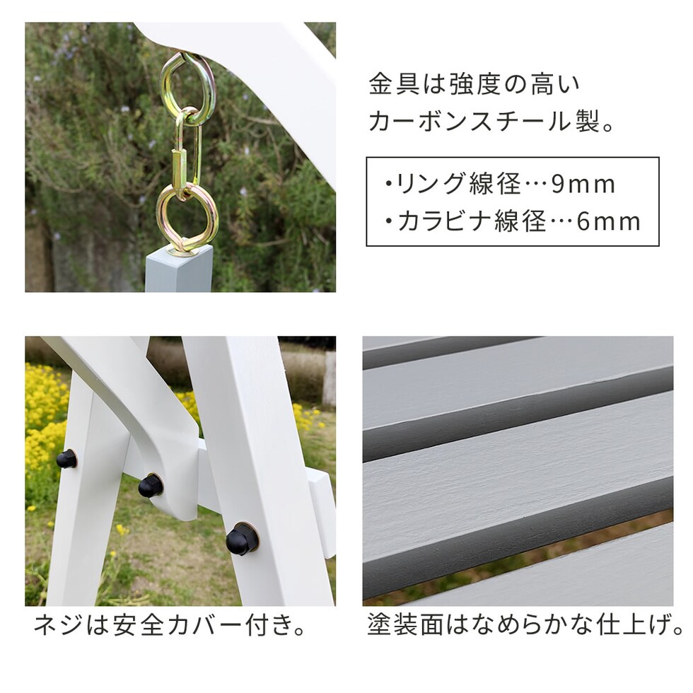 ※スウィングベンチは遊具ではありませんので、過度な荷重がかかるようなご使用はお避け下さい。