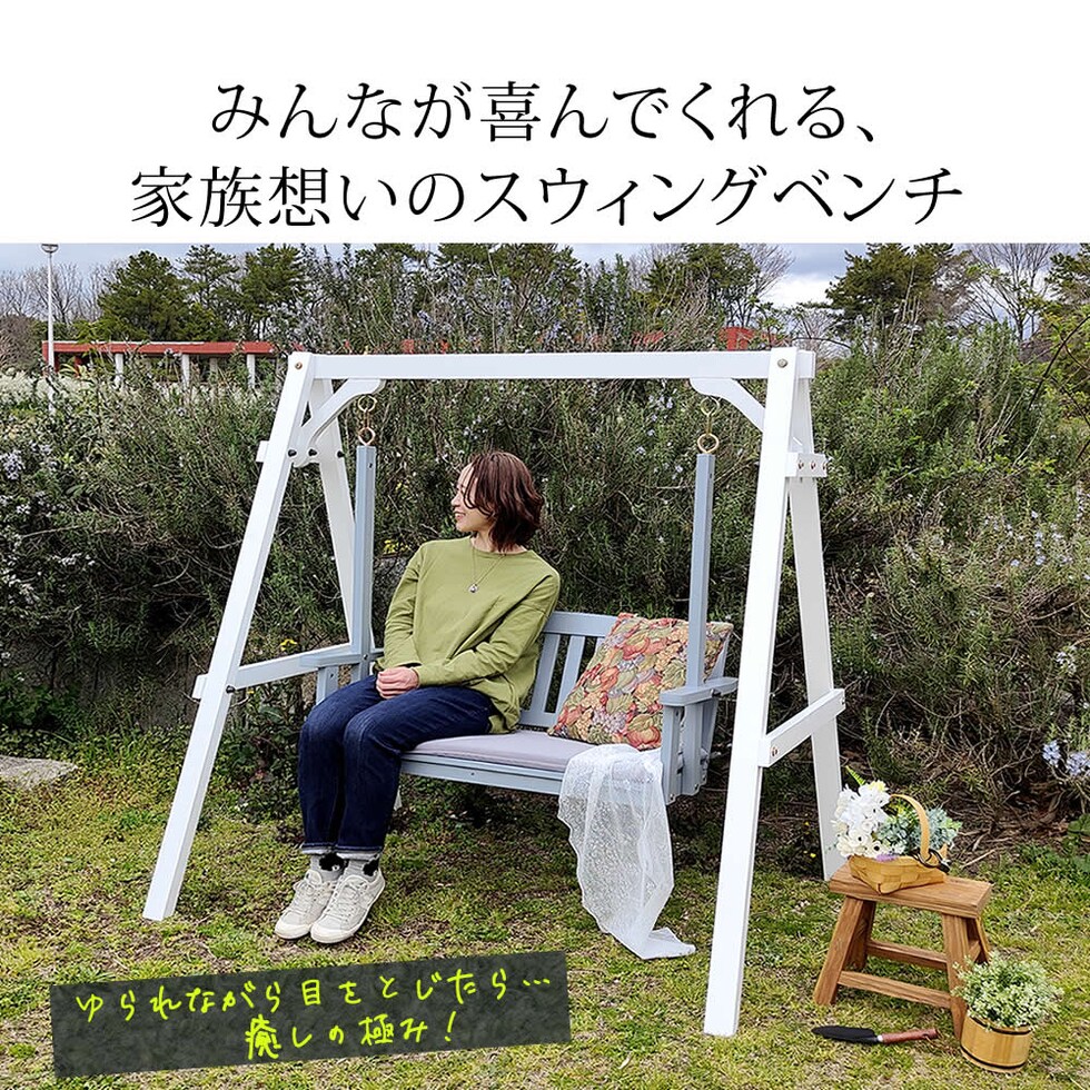 住まいスタイル 天然木製スウィングベンチ 「Elan」(エラン) EL-SW148 <br>2人乗り 木製 ウッド 屋外 室内 モダン おしゃれ かわいい スイング ブランコ 子供 大人 庭 ガーデン 雨 椅子 チェア ベンチ 2人 2人掛け ホワイト グレー