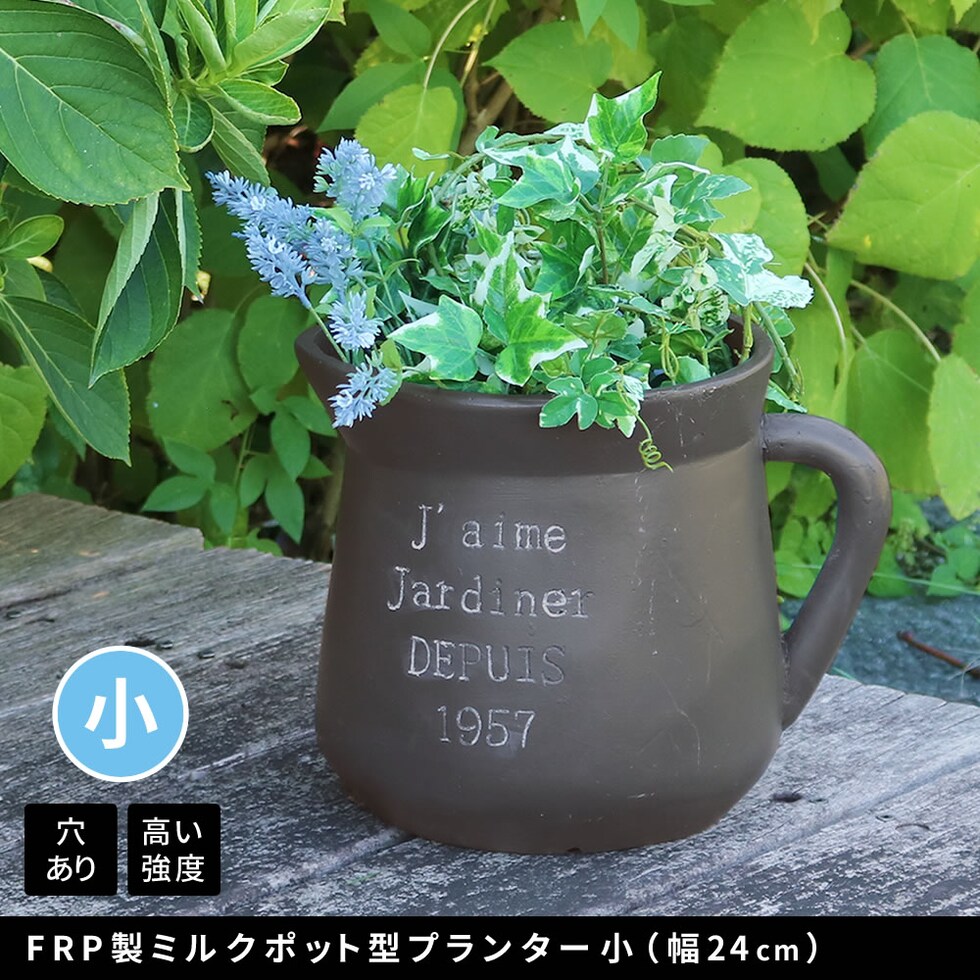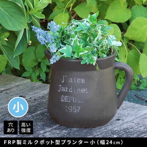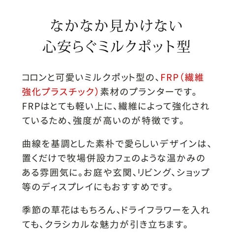 コロンと可愛いミルクポット型の、FRP(繊維強化プラスチック)素材のプランターです。