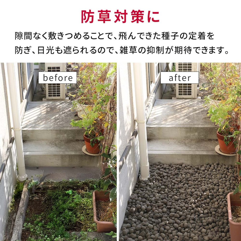 隙間なく敷きつめることで、飛んできた種子の定着を防ぎ、日光も遮られるので、雑草の抑制が期待できます。