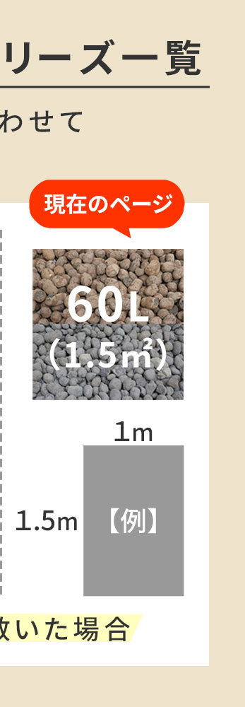 ※60L(1袋)で約1.5平米の敷地をカバーできます。