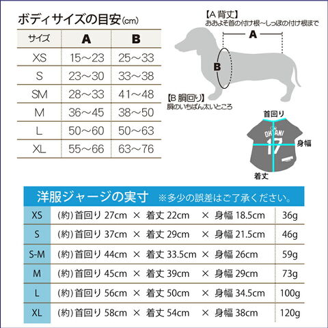 ※サイズ表記は目安ですので、ご購入の前に必ず、わんちゃんのサイズ(首回り、胴回り)をお測りいただき、サイズ記載をご確認ください。