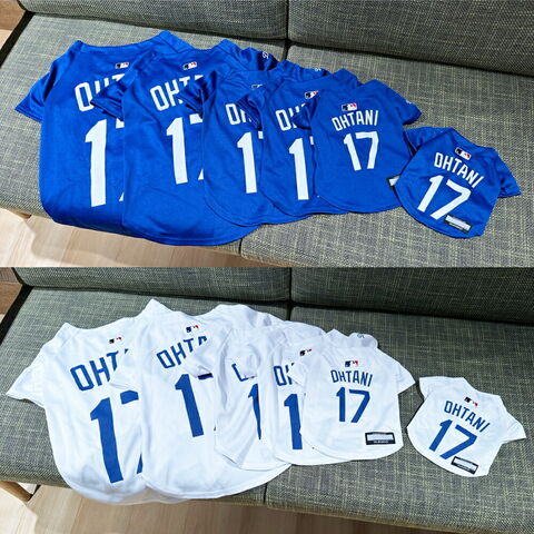 ドジャース 大谷ジャージ ホワイト ブルー 大谷 翔平 MLB公式 ロサンゼルス ドジャース 大谷翔平選手モデル ユニフォーム 野球 ジャージ ホワイト XS?XL Los Angeles Dodgers ペット 犬 SHO-4006