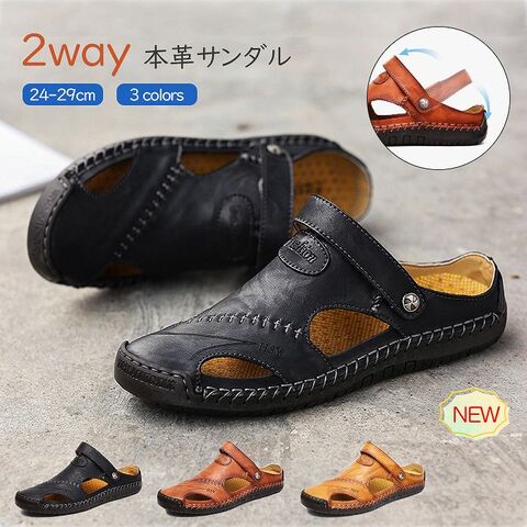 サンダル メンズ レザー 2way 本革 おしゃれ アウトドア 柔らかい 夏 メンズビーチサンダル つま先あり 軽量 歩きやすい 大きいサイズ おすすめ 滑り止め 革靴 メンズサンダル スリッパ メンズ靴 夏 靴 プレゼント 実用 レザーサンダル