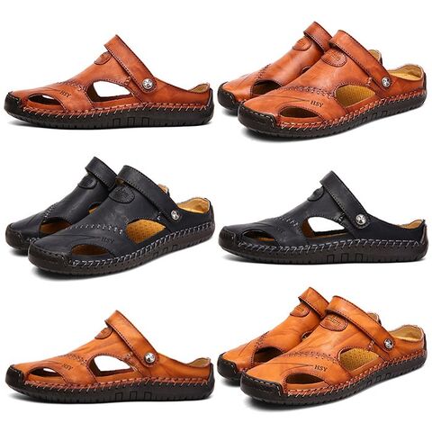 サンダル メンズ レザー 2way 本革 おしゃれ アウトドア 柔らかい つま先あり 大きいサイズ おすすめ 滑り止め 革靴 メンズサンダル スリッパ メンズ靴 夏 靴 プレゼント 実用 ブラウンG135