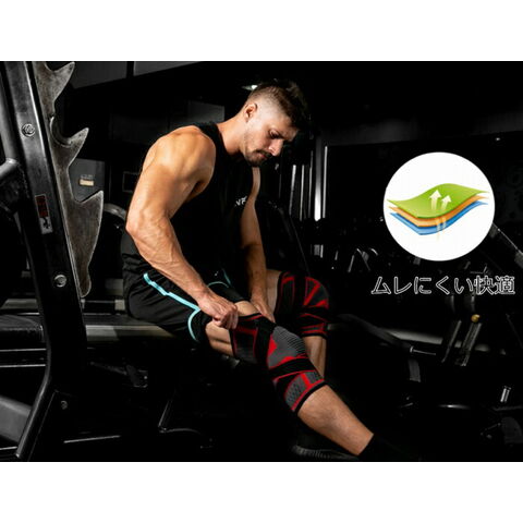 ・"安定感抜群の膝サポーターが膝の痛みや負担を軽減します。