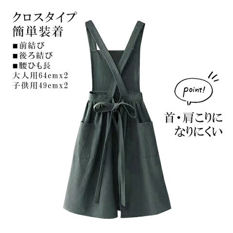綿100% エプロン おしゃれ 親子 大人用 子供用 お揃い 前掛け 作業用 クロスタイプ 薄手 ポイント付 ワンピース 職人 フリーサイズ 美容師 ガーデニング シェフ バー エプロン レディース 北欧 カフェ 可愛い シンプル G260