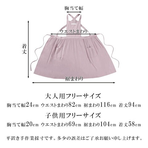 胸当て幅24cm ウエストまわり82cm 裾まわり116cm 着丈94cm
