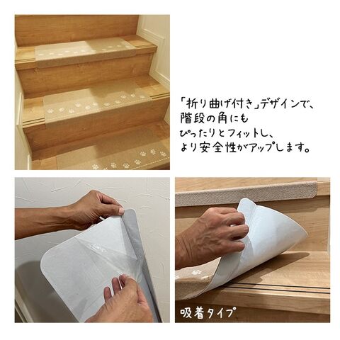 蓄光 階段マット 吸着 1?16枚 55×22cm 吸着 フリーカットOK 階段 肉球 カーペット マット 防音 キズ防止 滑り止めマット 吸着 ペット 階段 洗える 水洗い 吸着階段マット 蓄光式 足冷え キズ防止 滑り防止 折り曲げ付き 犬 猫 ペット 老犬 シニア犬G329