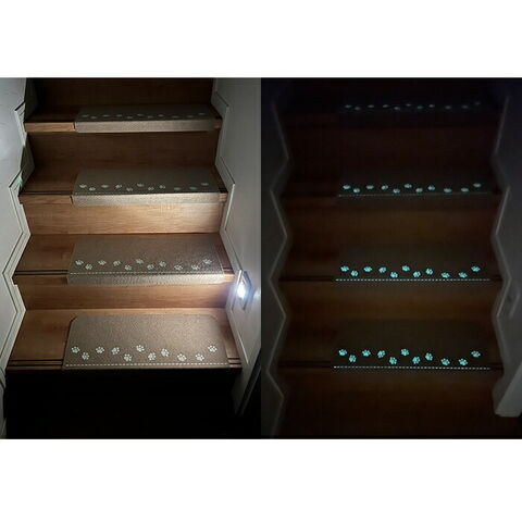 蓄光 フリーカット滑りにくい 折り曲げ付き 階段の角をカバー 吸着タイプ 階段マット 吸着式マット 滑り止めマット ペット用階段マット 蓄光デザイン 足元安全 夜間サポート 洗える階段マット 犬猫用階段マット 足跡デザイン 滑りにくいマット 取り外し簡単 インテリアマット 防音階段マット おしゃれな階段マット 55×22cm階段マット 多色展開
