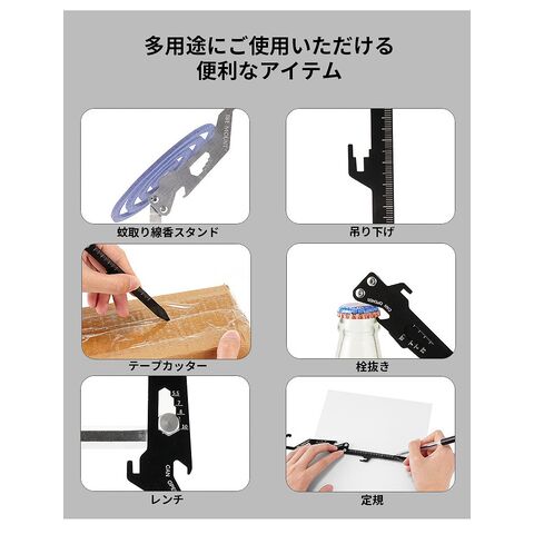 送料無料 蚊取り線香ホルダー 折り畳み式 アウトドア キャンプ コンパクト 蚊取り線香スタンド 5WAY 5役 吊り下げ ペグ型 多機能 防蚊 屋外 栓抜き テープカッター 定規 ガーデニング 家庭菜園作業 レンチ 虫除け ステンレス シルバー ブラック 黒 G332