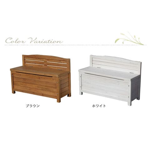 【天然木ベンチストッカー ブラウン/ホワイト】