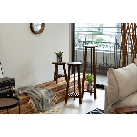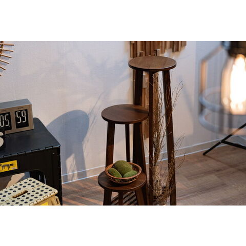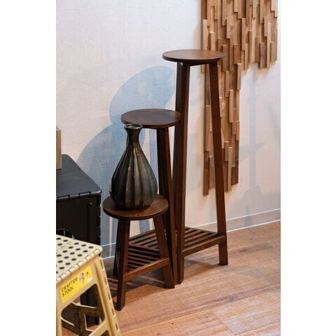 プランターベース おしゃれ 花台 木製 丸型 円形 棚付き 北欧 ガーデニング 室内 ブラウン ホワイト 軽量 かわいい