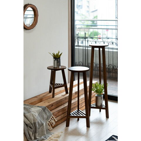 プランターベース おしゃれ 花台 木製 丸型 円形 棚付き 北欧 ガーデニング 室内 ブラウン ホワイト 軽量 かわいい