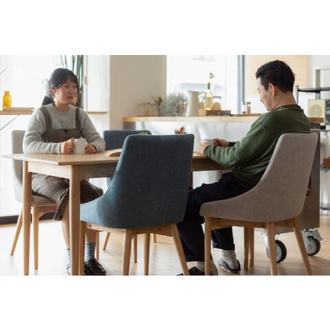 東谷 ダイニングチェア W53×D57×H85×SH45cm ブルー/ブラウン/グレー 天然木(アッシュ) ウレタン塗装 ポリエステル 組立 HOC-611BL