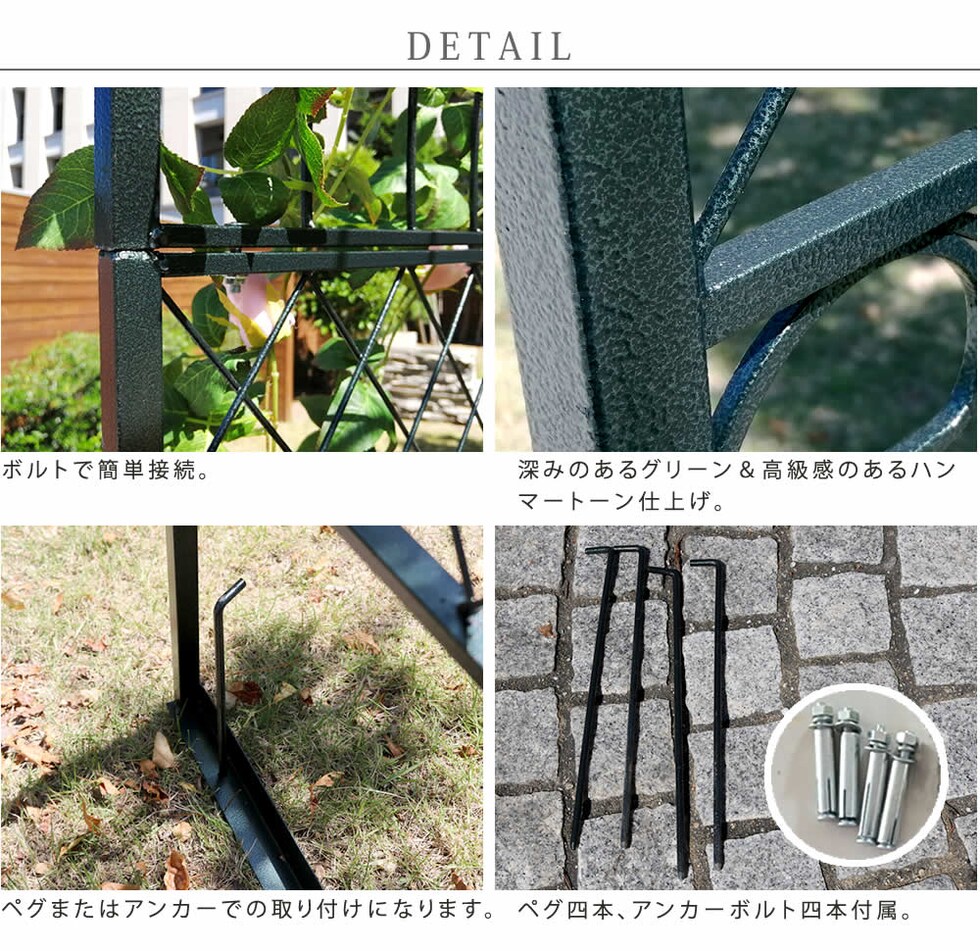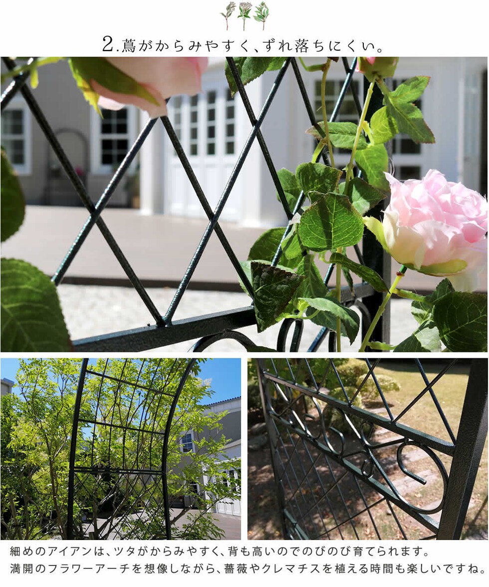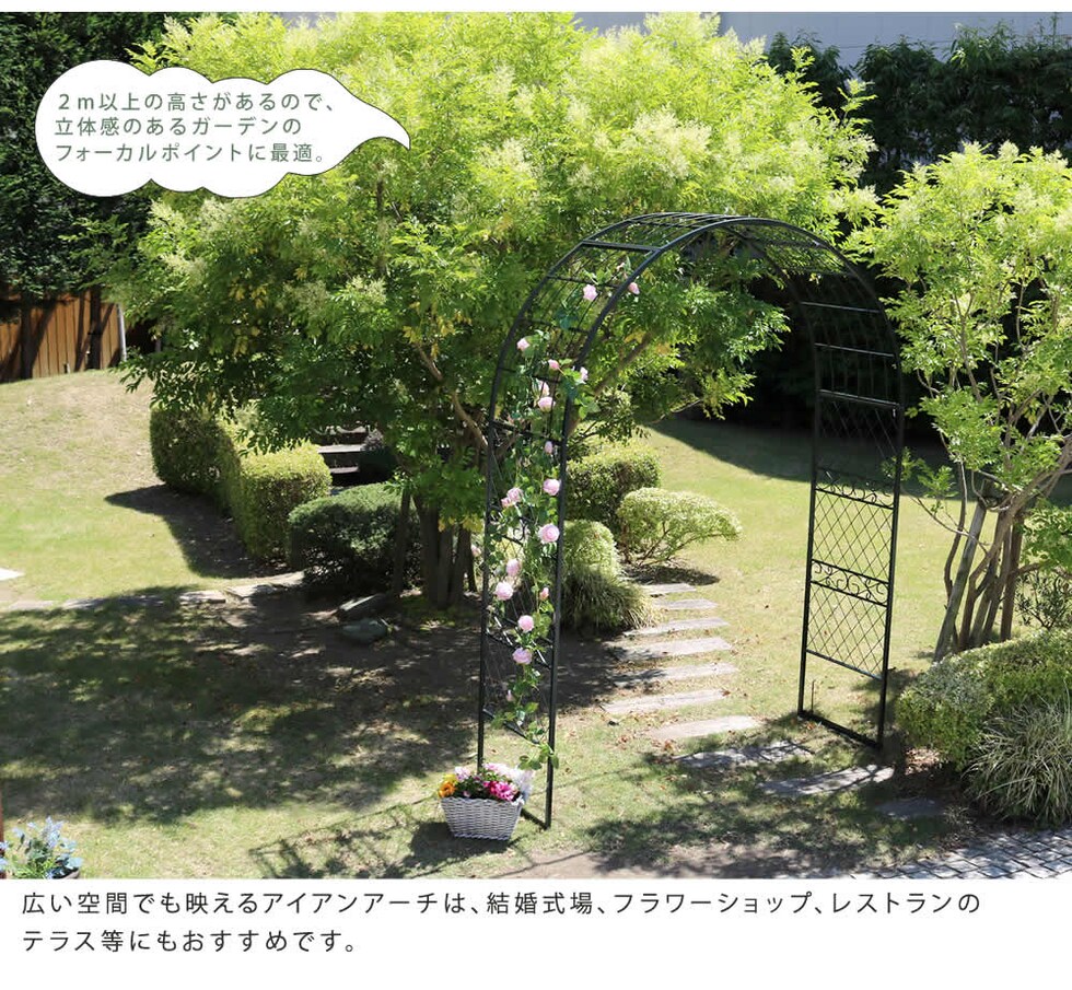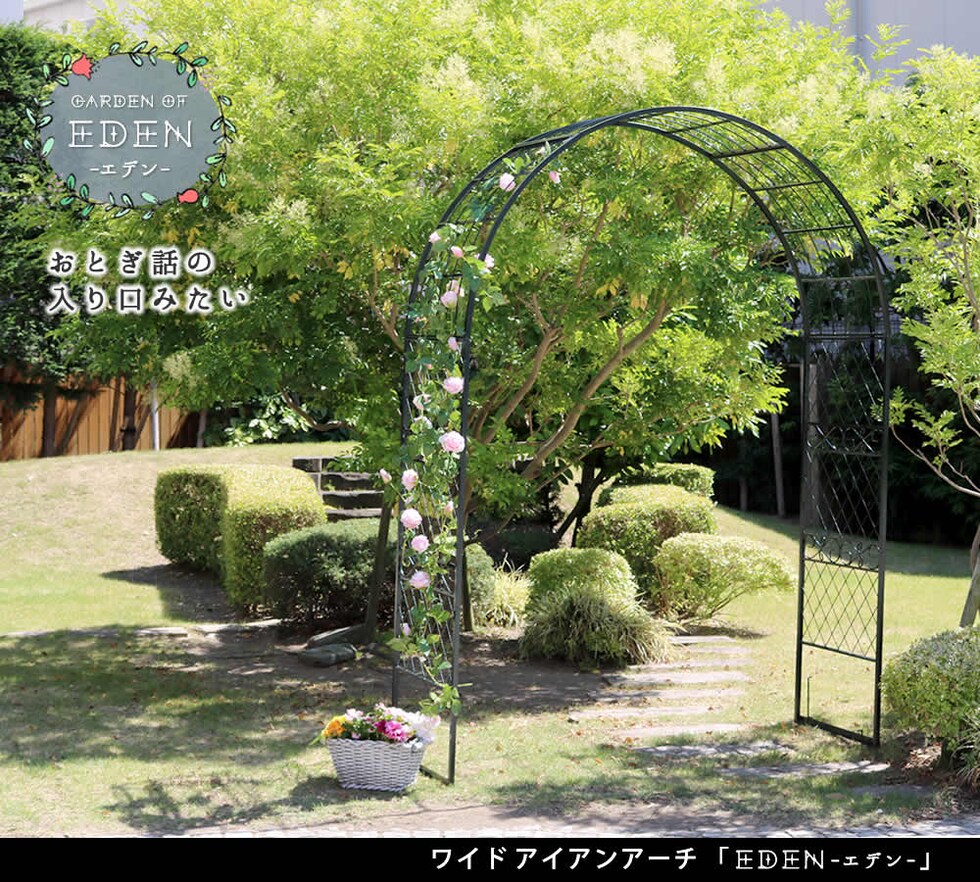 住まいスタイル ワイドアイアンアーチ【送料無料 ダークグリーン アイアン アーチ 門 木製 バラ 薔薇 フェンス おしゃれ 小型 北欧 ガーデニング 屋外 家具 ツタ 蔦 エントランス エクステリア ロマンチック トレリス 園芸支柱 つるバラ 誘引 黒 ブラック 】