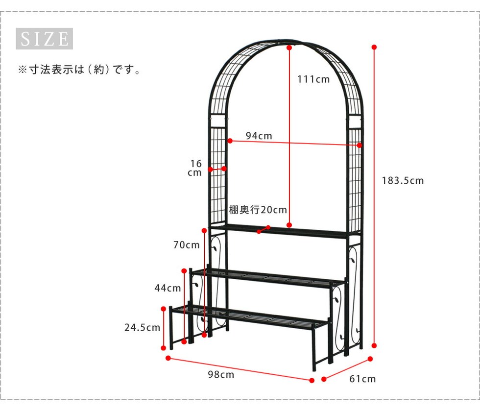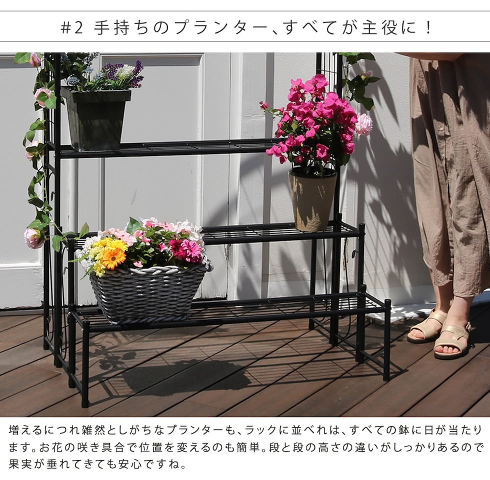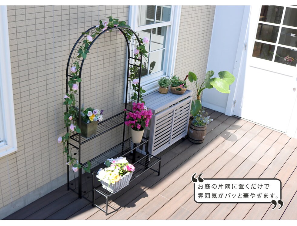 住まいスタイル アーチ付フラワーラック <br> 【 送料無料 つる 花壇 日当たり アーチ ハンギング バラ 蔦 ひな壇 デザインアーチ 階段 フラワースタンド 花台 3段 三段 誘引 ローズアーチ 】