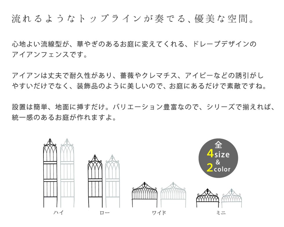 | ■商品名 | アイアンフェンス ワイドタイプ "drape"(ドレープ) 3枚組 |