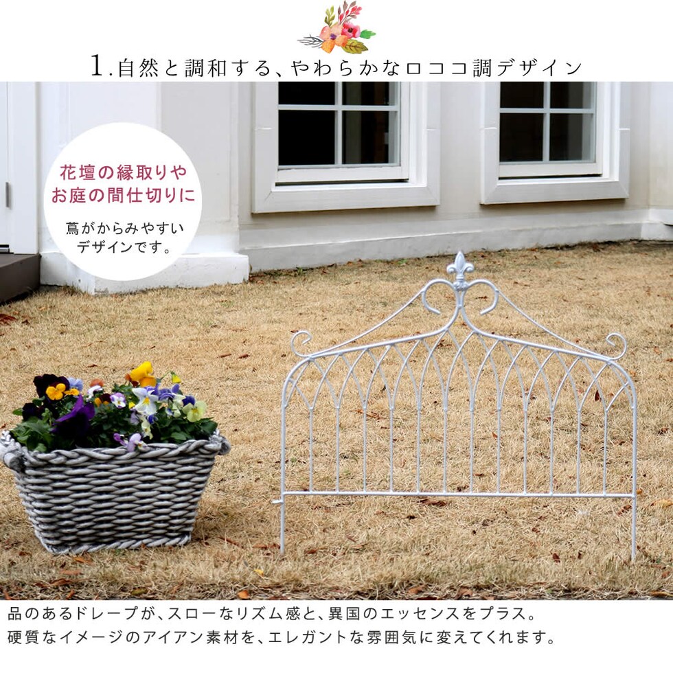 住まいスタイル アイアンフェンス ワイドタイプ ”drape”(ドレープ)3枚組<br>【送料無料 フェンス アイアン ガーデンフェンス 枠 柵 仕切り 目隠し 境目 クラシカル アンティーク 飾る ベランダ つる 薔薇 バラ 朝顔 園芸 纏う 庭 屋外 diy 簡易 】
