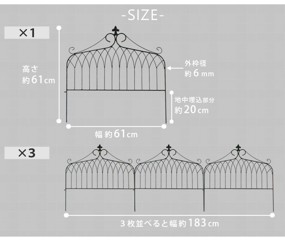 【アイアンフェンス ワイドタイプ "drape"(ドレープ)3枚組】